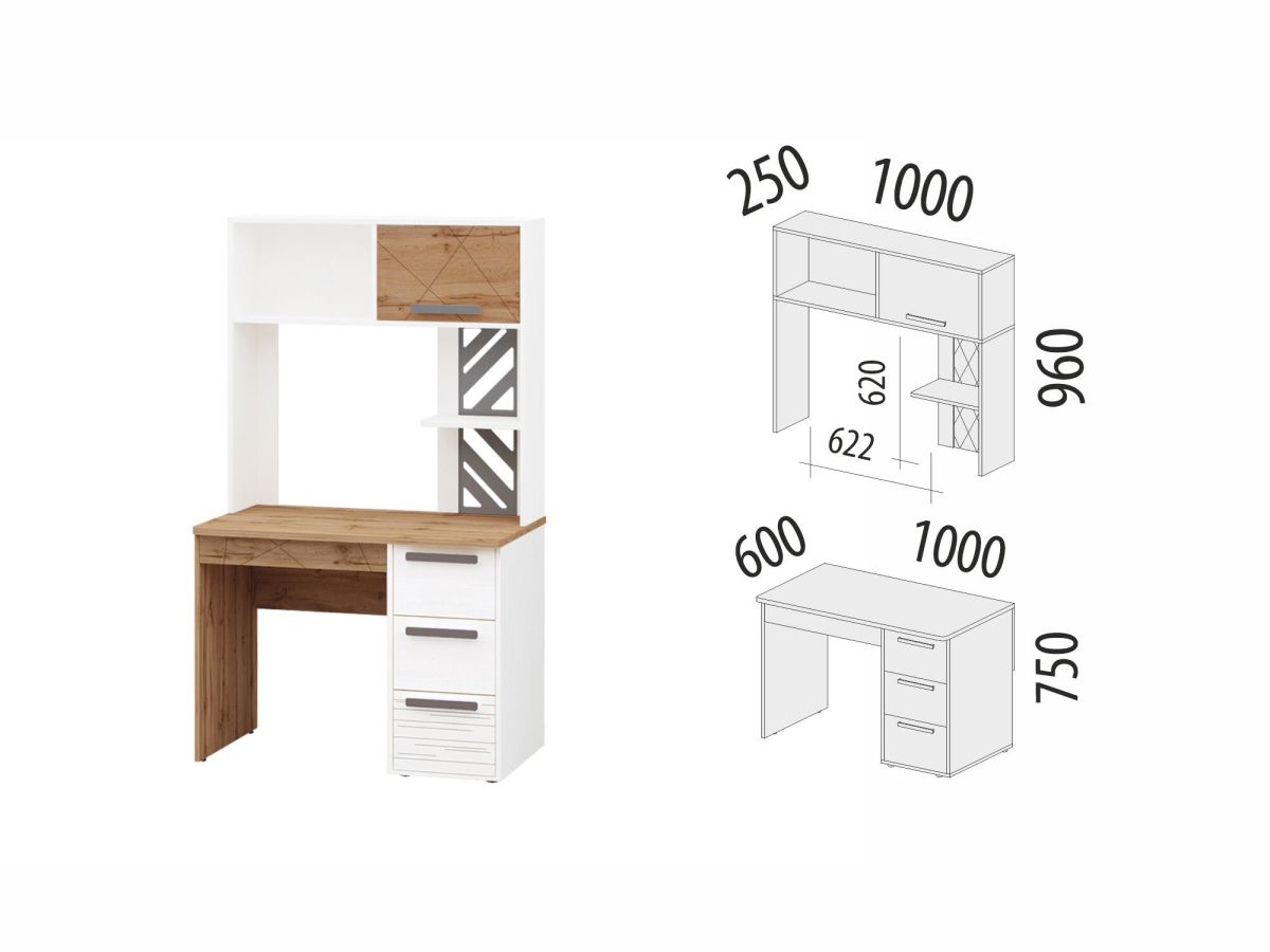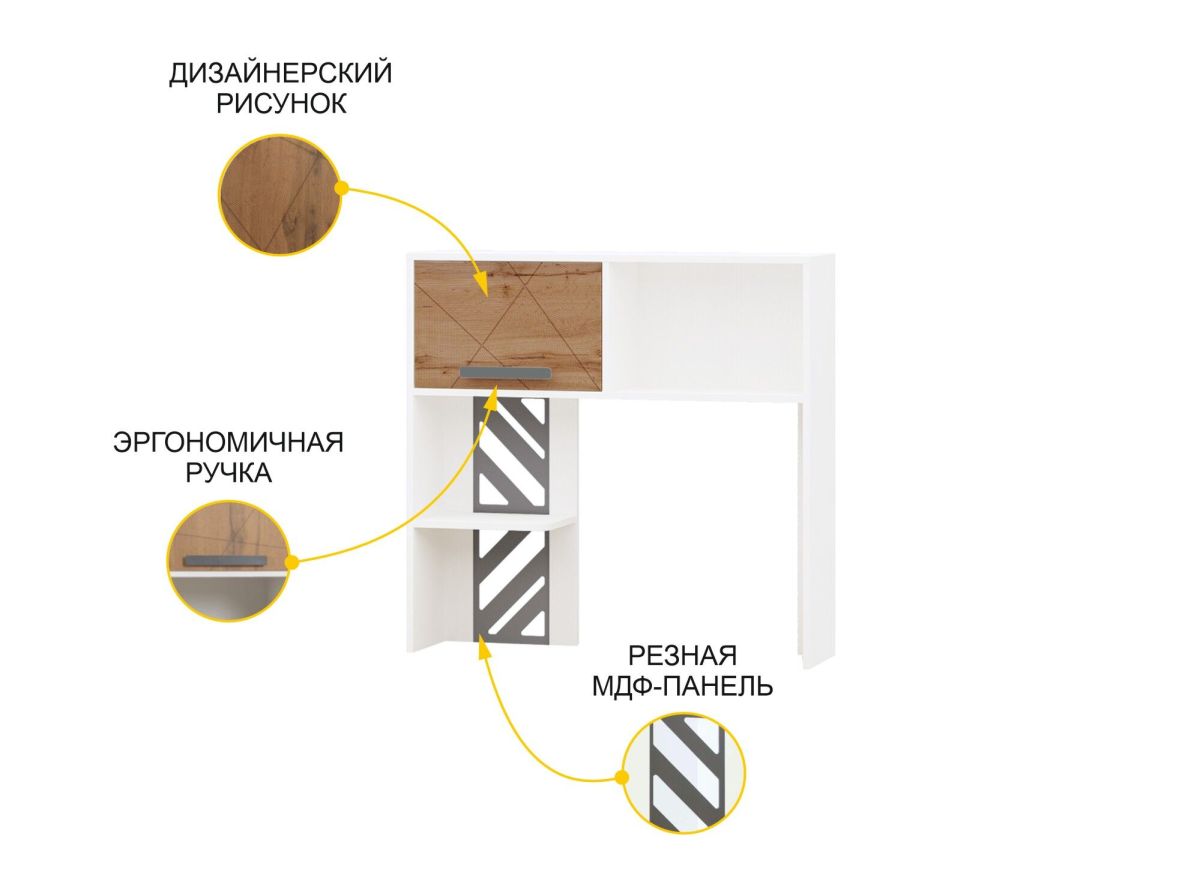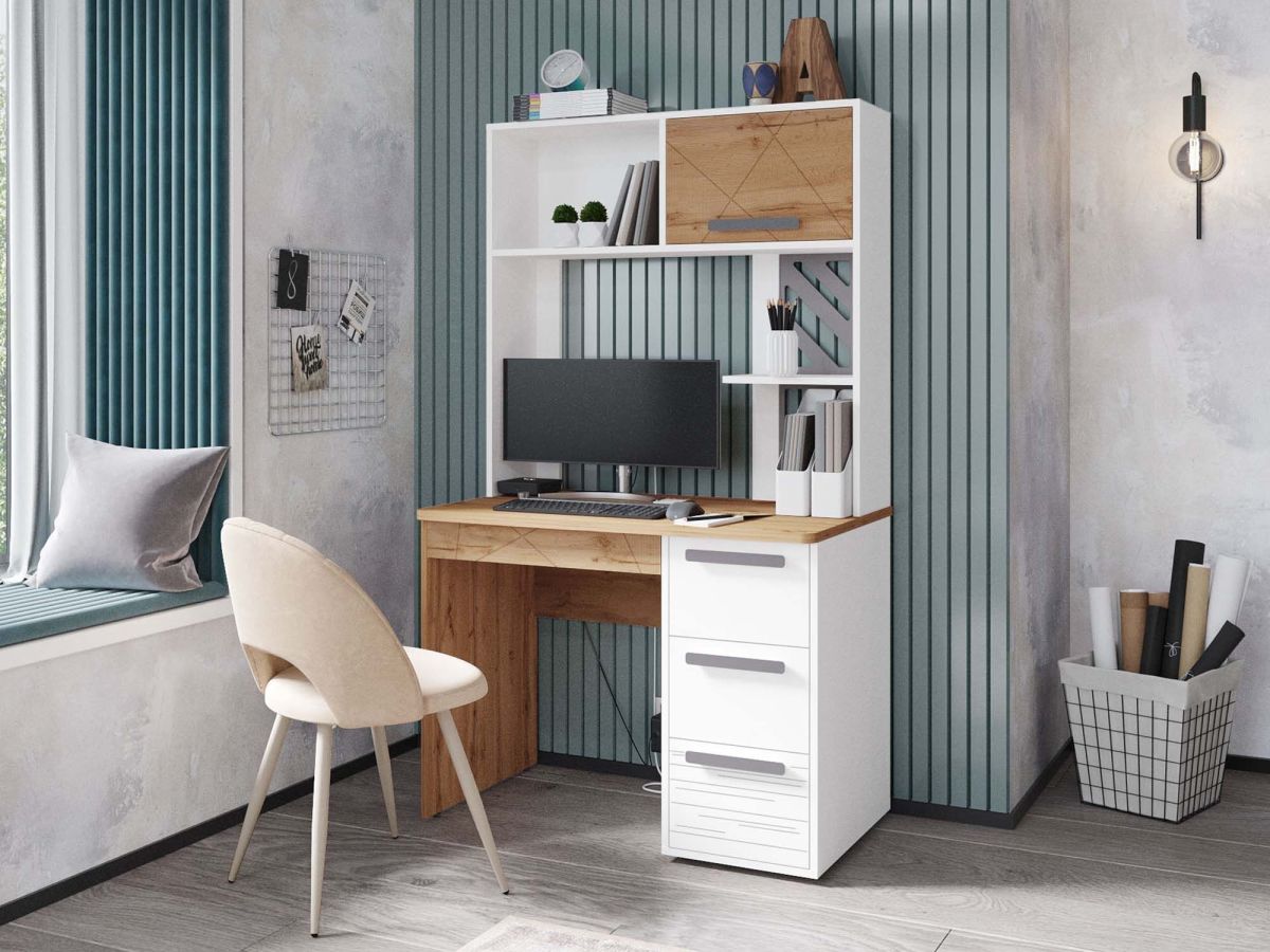 Стол с надстройкой «Аляска 503» — это современное и функциональное пространство для жизни и учебы. Сочетание белоснежных фасадов с теплым оттенком натурального дерева создает стильный образ коллекции, а универсальный дизайн отлично подойдет как юношам и девушкам, так и детям дошкольного возраста.