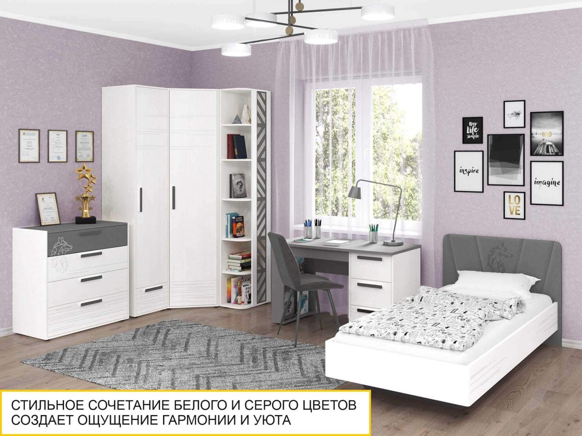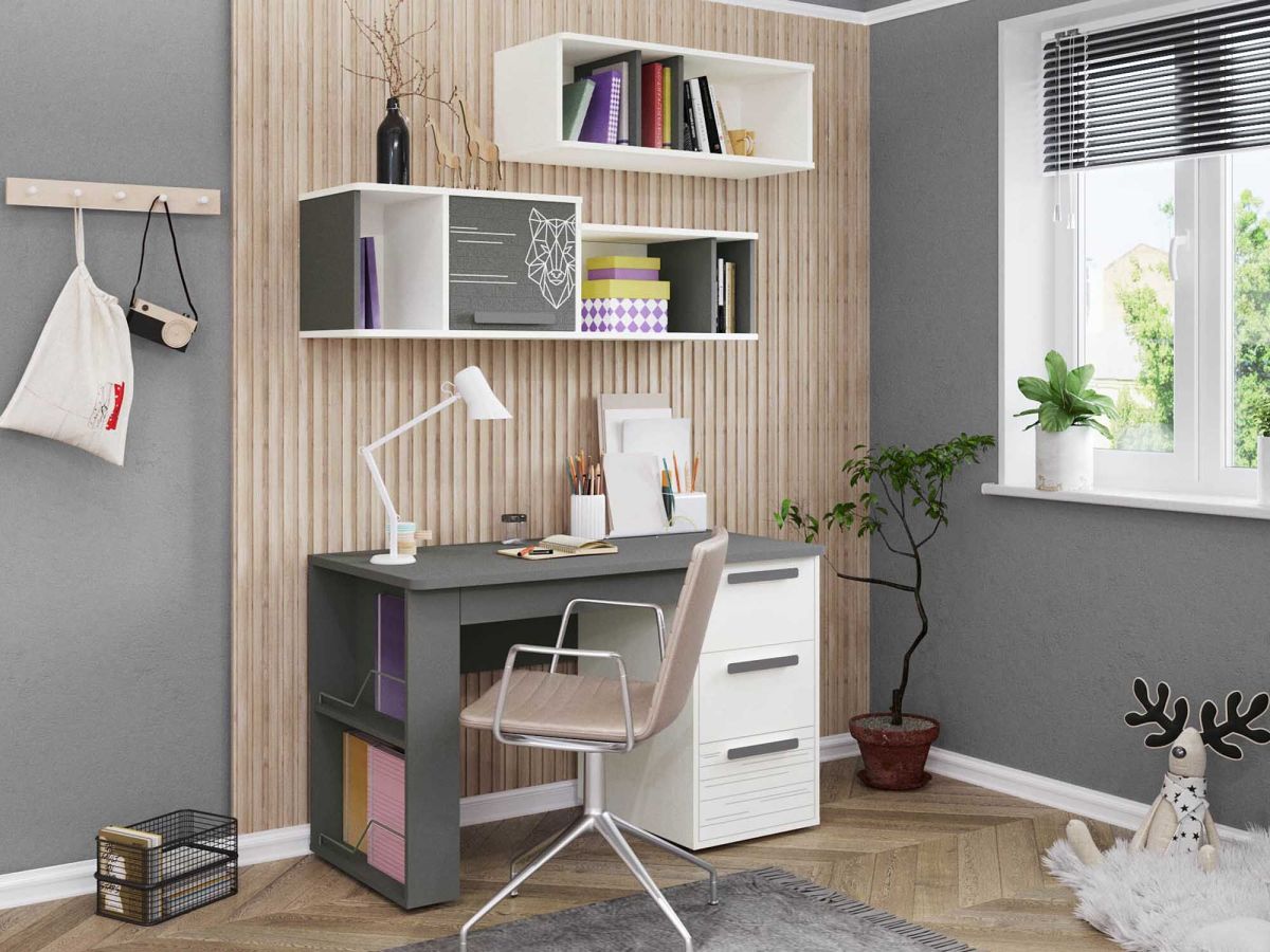 Стол с полками «Аляска 6» является частью модульной программы «Аляска». Эта коллекция представляет собой новый уровень комфорта и стиля. Изысканный минимализм с акцентом на функциональность делает эту детскую идеальным выбором для мечтательных и независимых подростков.
