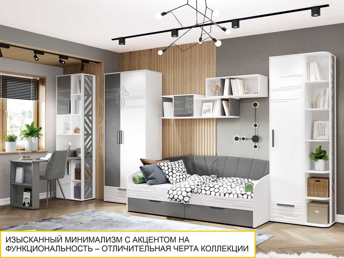 Стол с полками «Аляска 7» является частью модульной программы «Аляска». Эта коллекция представляет собой новый уровень комфорта и стиля. Изысканный минимализм с акцентом на функциональность делает эту детскую идеальным выбором для мечтательных и независимых подростков.