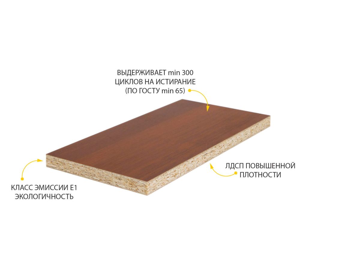 • ЛДСП выдерживает min 300 циклов на истирание, что почти в 5 раз больше, чем требуется по ГОСТу (min 65).