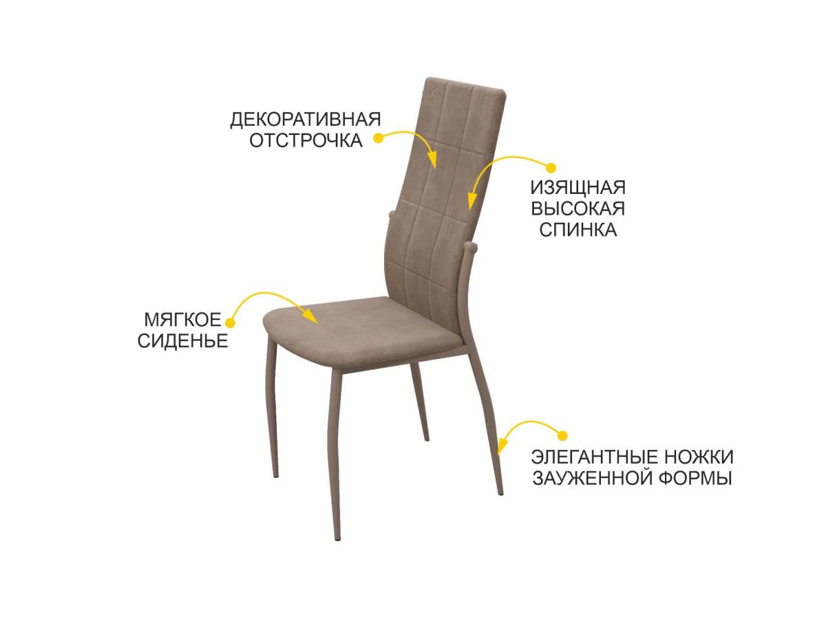 • Изящная высокая спинка стула идеально сочетается с ножками и привносит в интерьер утонченные ноты.