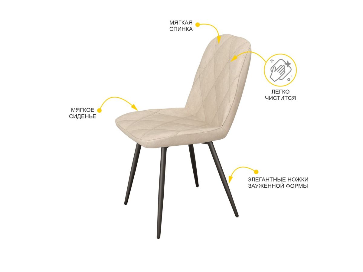 - Элегантные ножки матового черного цвета придают стулу эффектный внешний вид и поддерживают общую концепцию изделия.
