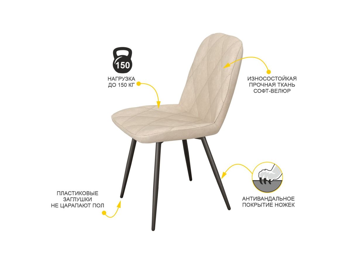 Стул Велюр Престиж (04) Десерт бежевый-Черный