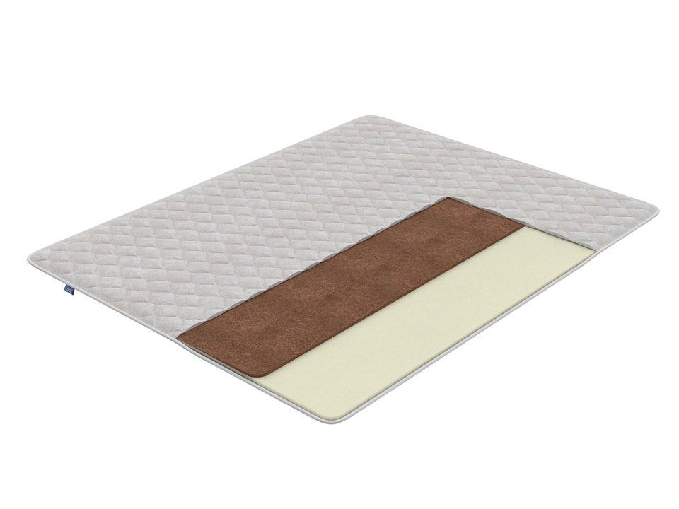 Наполнитель состоит из натуральной кокосовой койры и пены ортофом. Натуральный кокос наделяет поверхность необходимой жестокостью и упругостью, отличается повышенной гигиеничностью и обладает антибактериальным эффектом. Пенный материал ортофом способен выдерживает высокие нагрузки, сохраняя свою форму и свойства на длительный срок.