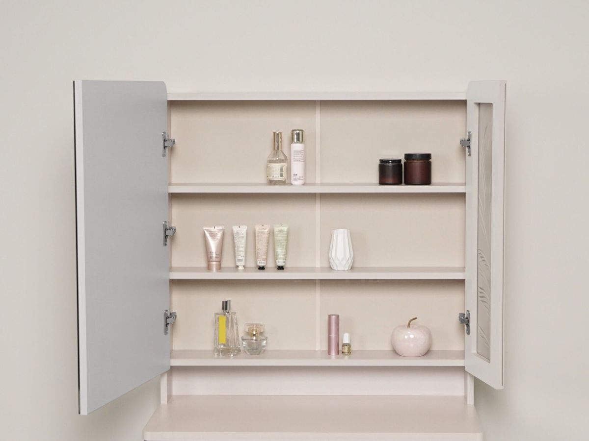 - Полки за дверцами помогут организовать хранение необходимых мелочей.