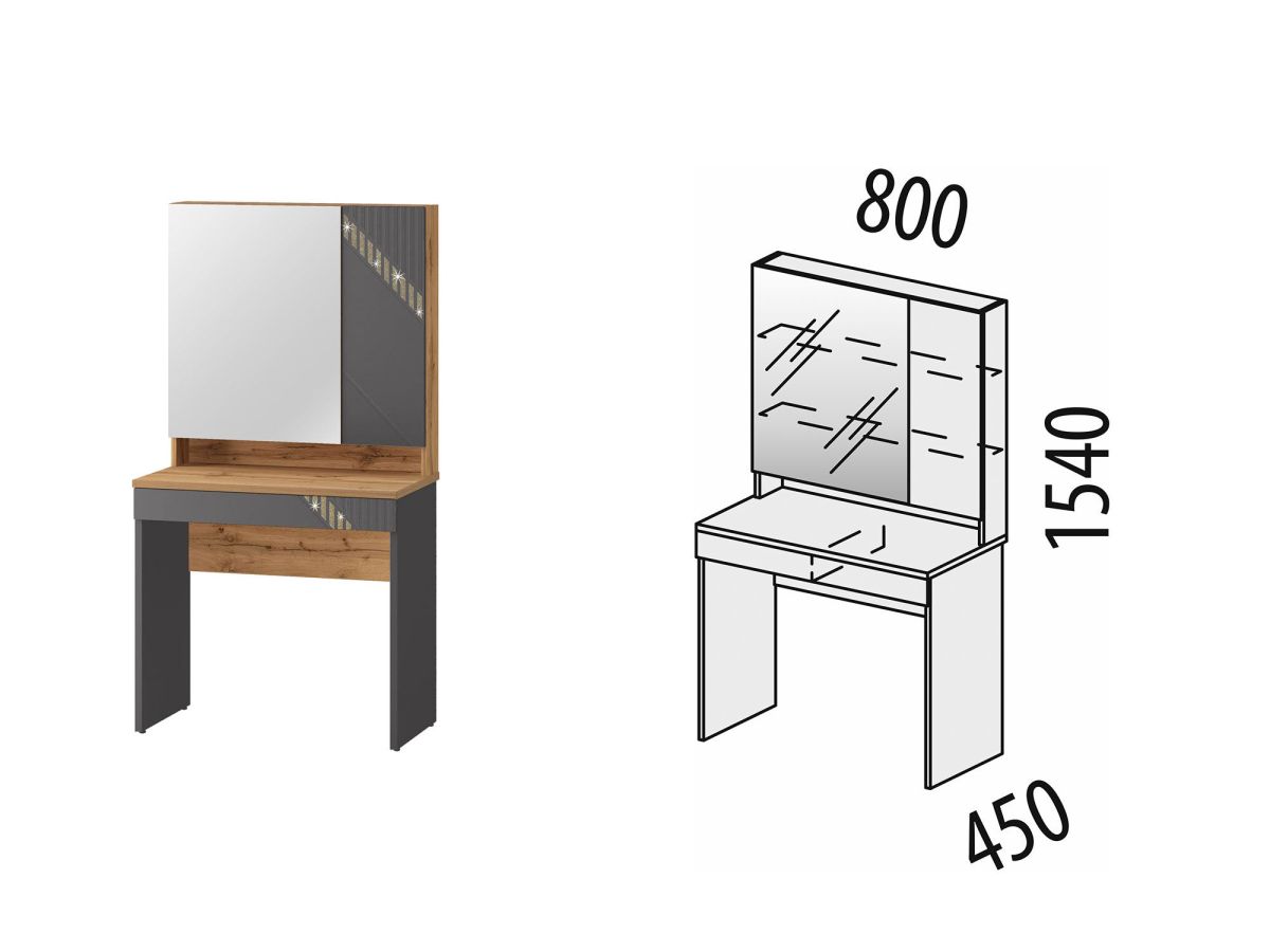 Туалетный столик «Монако 902.30» является частью модульной программы «Монако 902». Коллекция «Монако» - это образец элегантного стиля и утонченного вкуса. Сочетание матовой графитовой поверхности фасадов с благородной древесной текстурой создает особую атмосферу гармонии и комфорта.
