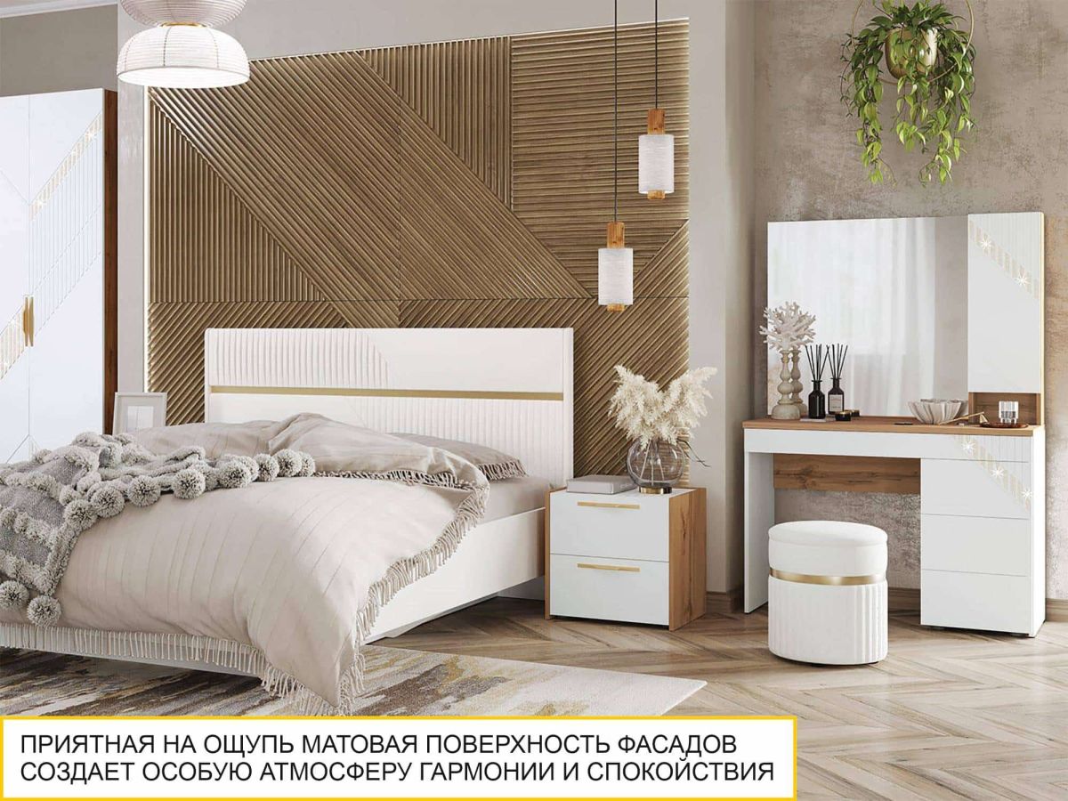 • Приятная на ощупь матовая поверхность фасадов создает уютную и спокойную обстановку в комнате, деликатно рассеивает свет.