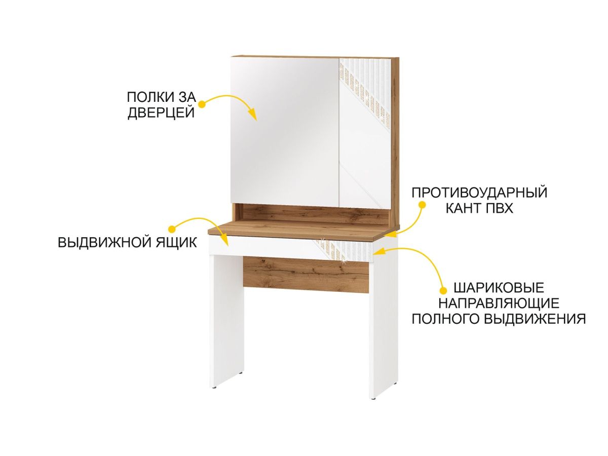 Туалетный столик «Монако 903.30» является частью модульной программы «Монако 903». Коллекция «Монако» - это образец элегантного стиля и утонченного вкуса. Сочетание матовой белоснежной поверхности фасадов с благородной древесной текстурой подчеркивает изысканный дизайн коллекции.