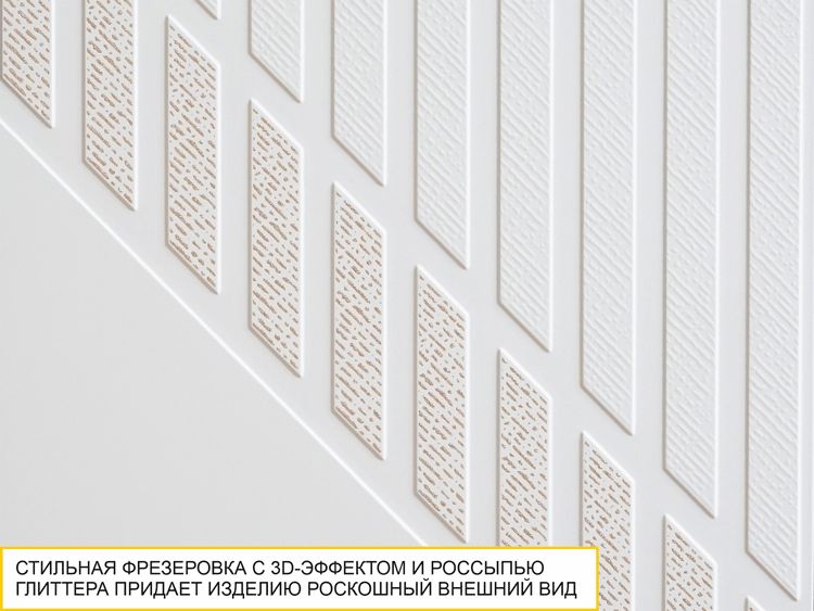 - Эффектная фрезеровка с объемным 3D-рисунком и россыпью глиттера подчеркивает эксклюзивный и уникальный вид изделия.