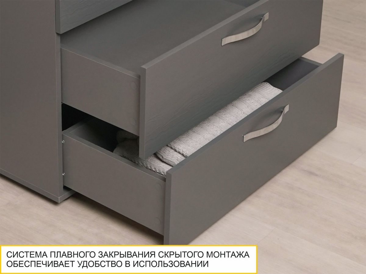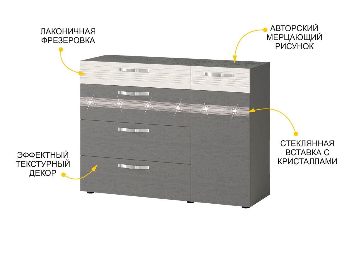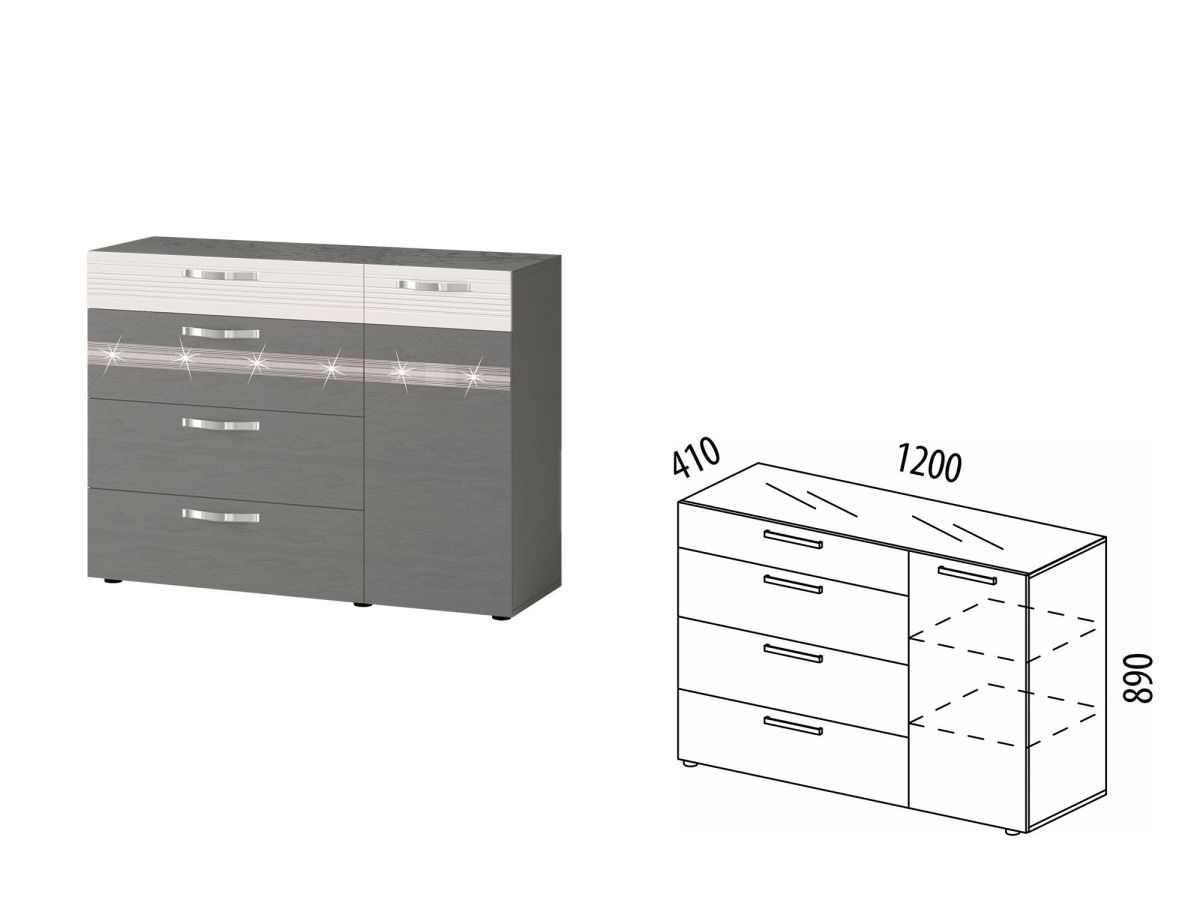 Комод «Графит 604.33» является частью модульной программы «Графит». Коллекция «Графит» – пример совмещения модных тенденций и универсальности.