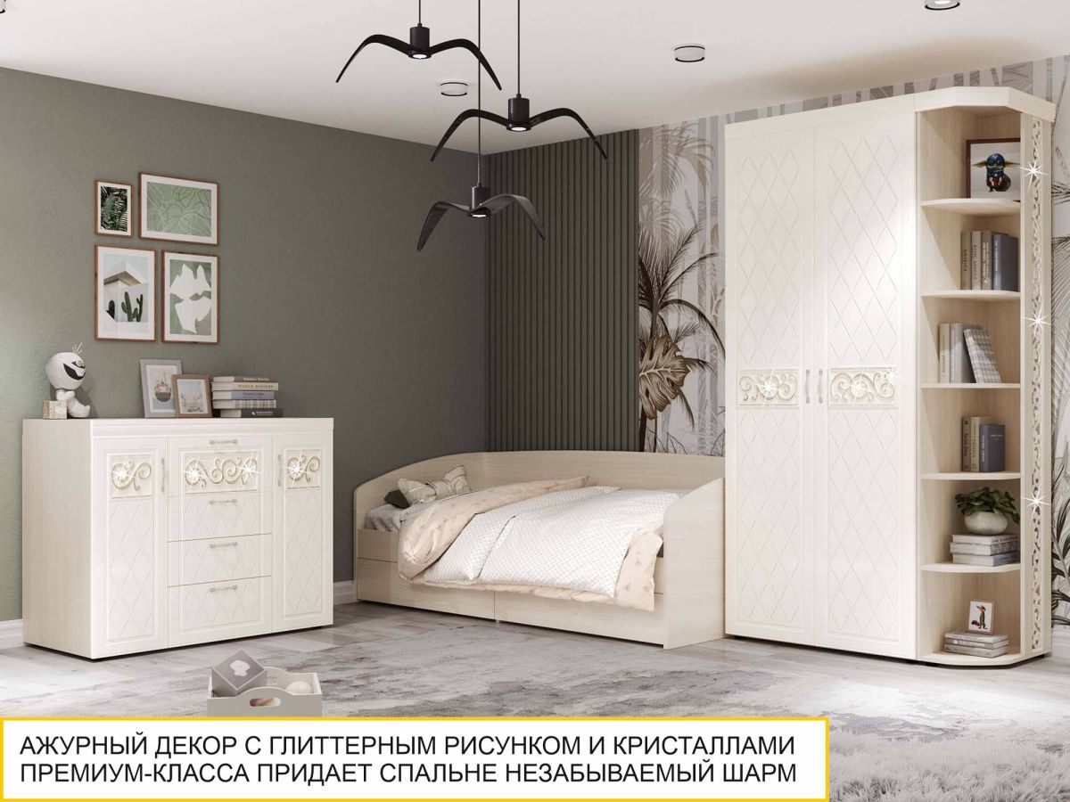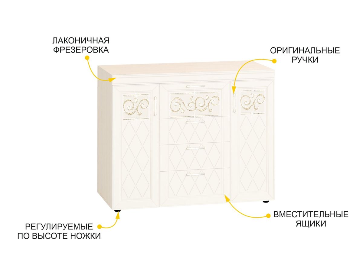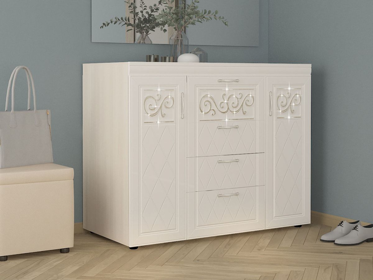 Комод «Тиффани 93.20» является частью модульной программы «Тиффани». Коллекция «Тиффани» - символ классического стиля и незабываемого шарма. Нежные светлые фасады и изысканность декора - отличительная черта коллекции. Ажурные декоративные элементы и кристаллы придают уникальность коллекции.