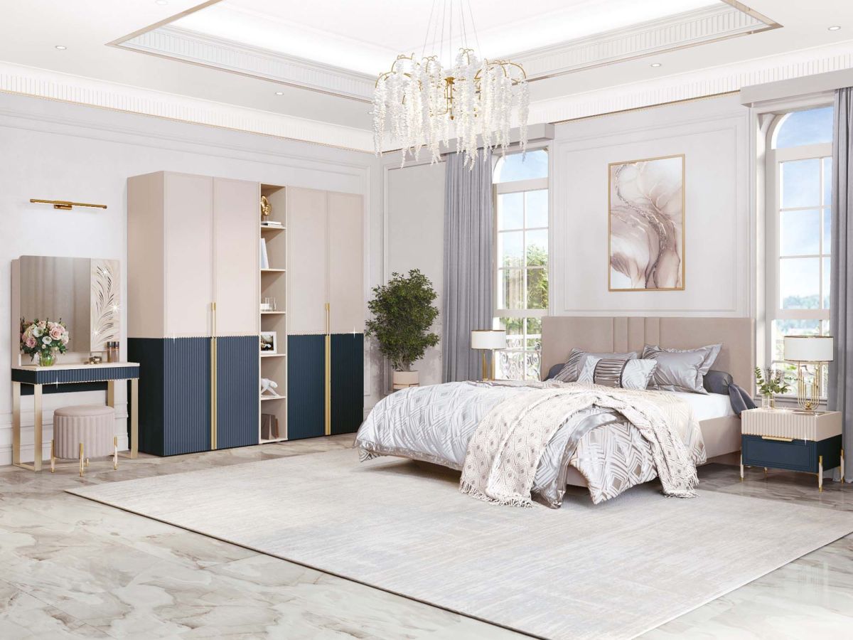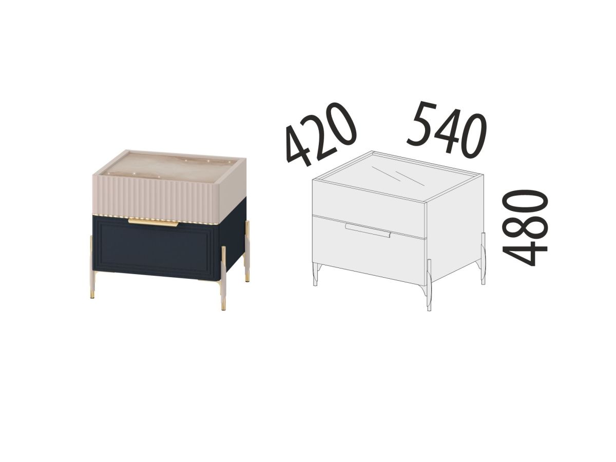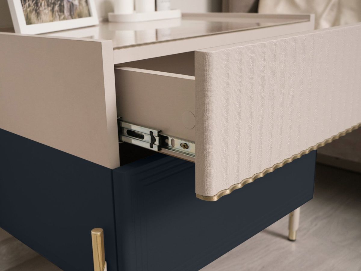 Прикроватная тумба «Флоренция 905.07» является частью модульной программы «Флоренция». Спальня «Флоренция» – это образец изящности и современной роскоши. Цвета «Кашемир» и «Индиго» образуют стильный и теплый дуэт: светлый тон наполняет пространство мягкостью, а насыщенный темно-синий придает интерьеру глубину и изысканность. Оригинальные элементы в цвете «сатиновое золото» и элегантная фрезеровка подчеркивают утонченный дизайн коллекции.