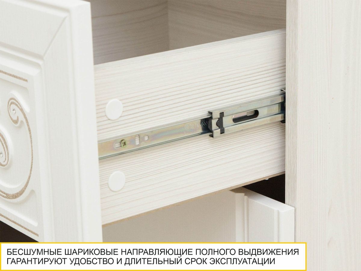 - Выдвижные ящики тумбы оснащены шариковыми направляющими, которые обеспечивают плавный бесшумный ход и длительный срок эксплуатации изделия. Полное выдвижение ящиков обеспечивает комфорт, позволяет быстро и легко найти необходимые вещи.