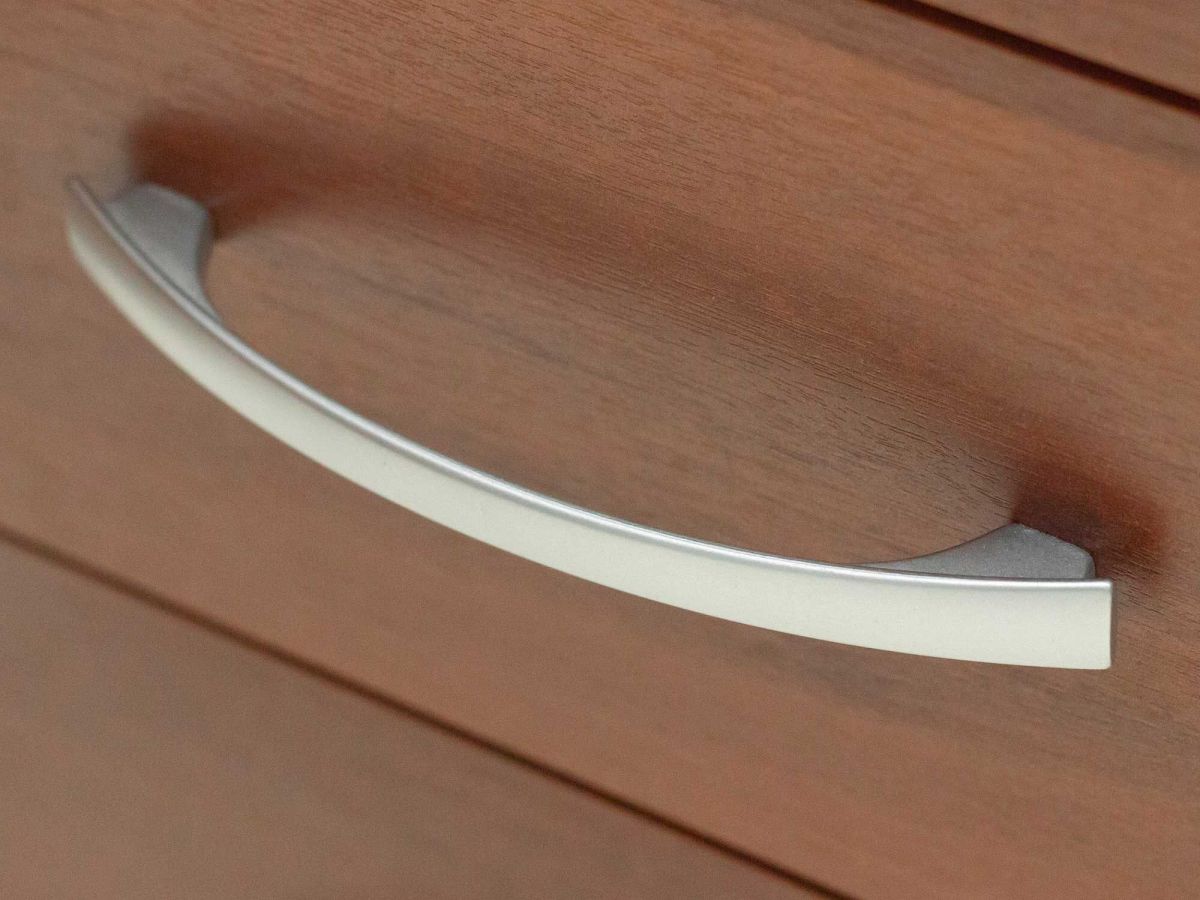 - Лаконичные металлические ручки с матовой серебристой поверхностью идеально гармонируют с мебелью, подчеркивают ее стиль и надежность.