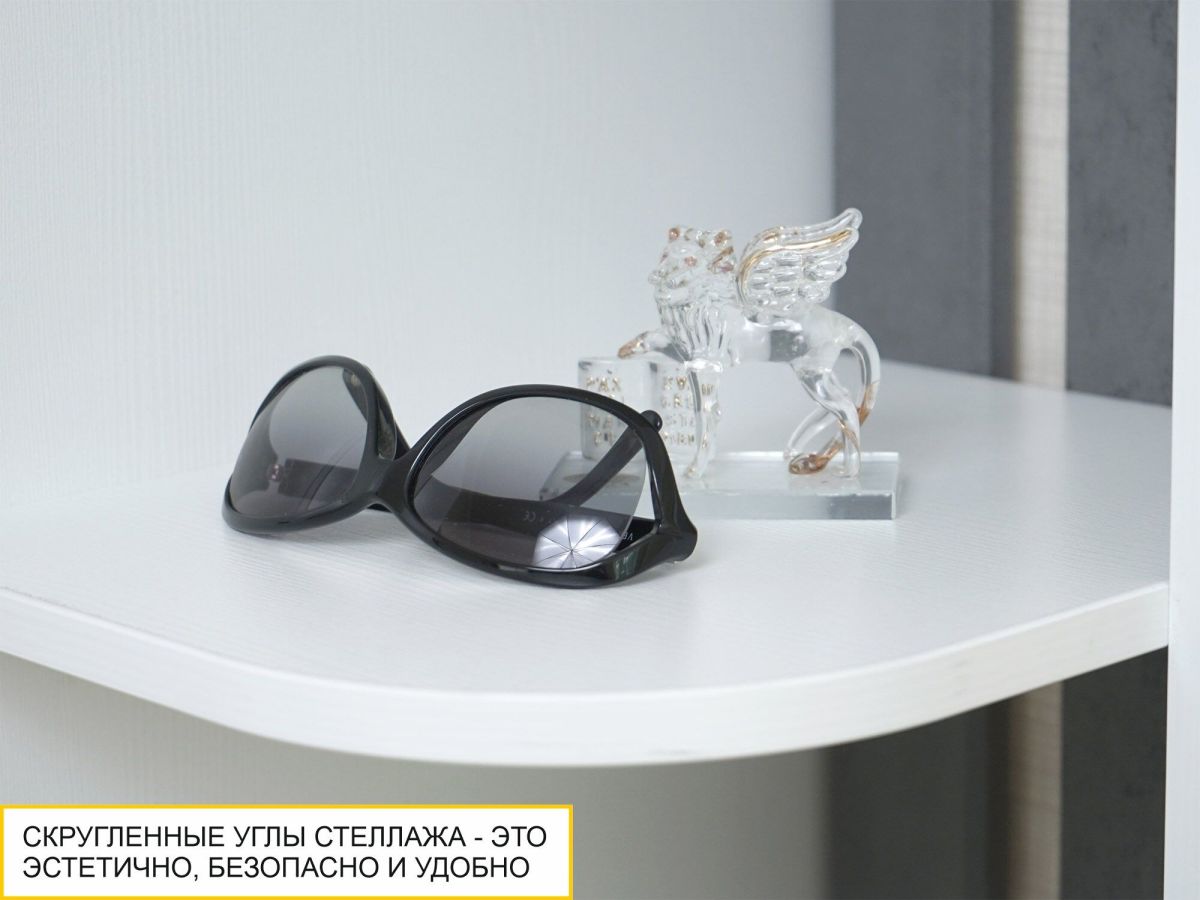 - Скругленные углы стеллажа обеспечивают безопасность и добавляют эстетичности прихожей.