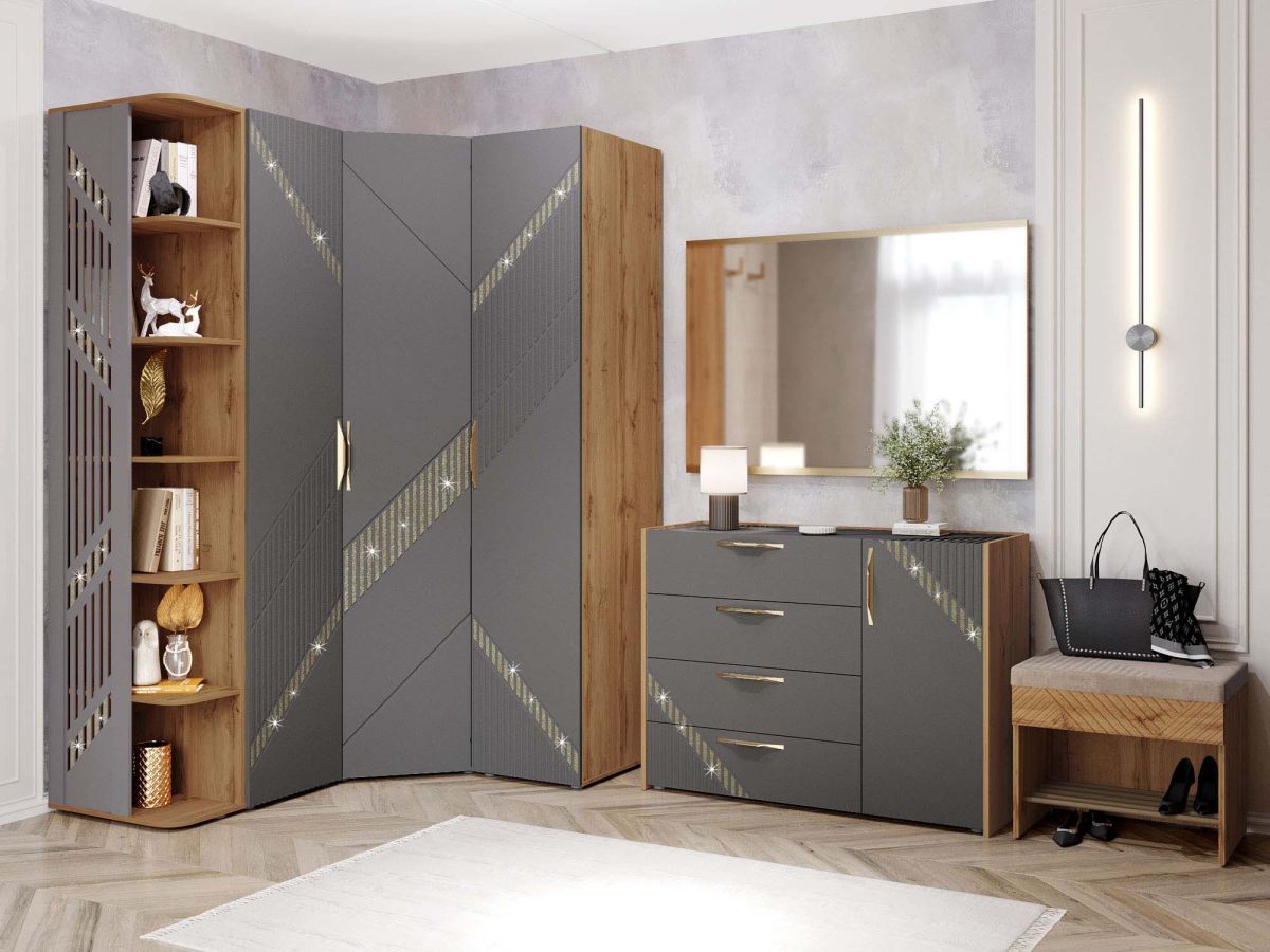 Угловой набор мебели для прихожей «Монако 402 170» является частью модульной серии «Монако». «Монако 402» – образец элегантного стиля и утонченного вкуса. Сочетание матовой графитовой поверхности фасадов с благородной древесной текстурой «Дуб Вотан» создает особую атмосферу гармонии и комфорта.