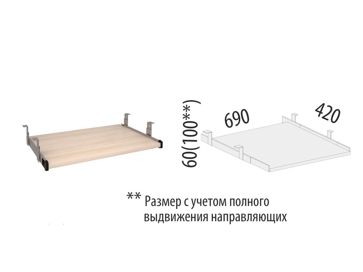 Выдвижная панель «Альфа 63.25» является частью модульного набора мебели для офиса «Альфа 63».
