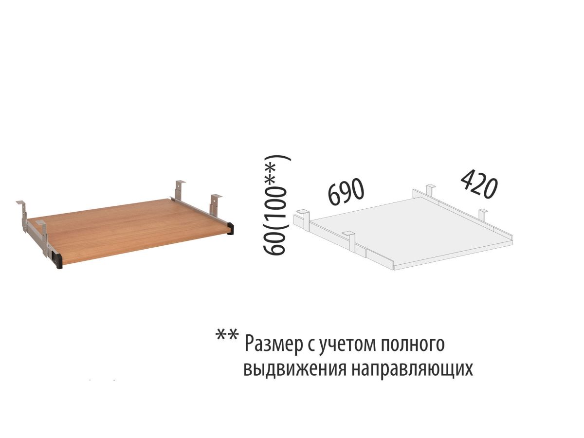 - Выдвижная панель подходит к любым письменным и компьютерным столам в цвете «Миланский Орех» кроме «Рубин 42.44» шириной 800 мм и позволяет сэкономить место на рабочей поверхности.