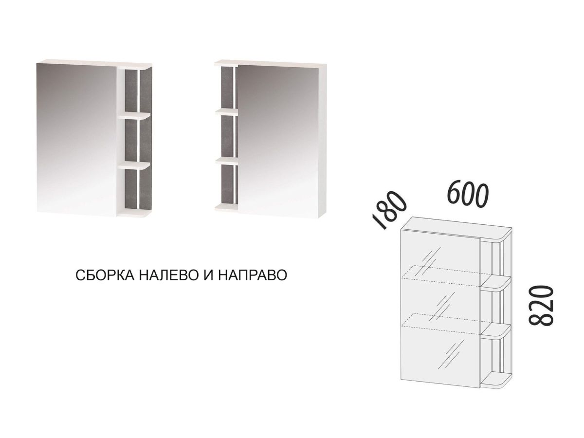 - Зеркало имеет универсальную сборку направо или налево, что позволяет удобно организовать пространство любого интерьера.