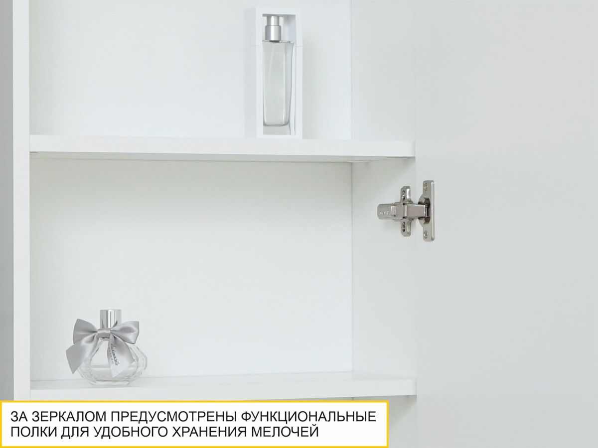 - Полки за зеркалом позволяют хранить разные мелочи и иметь под рукой необходимые аксессуары.
