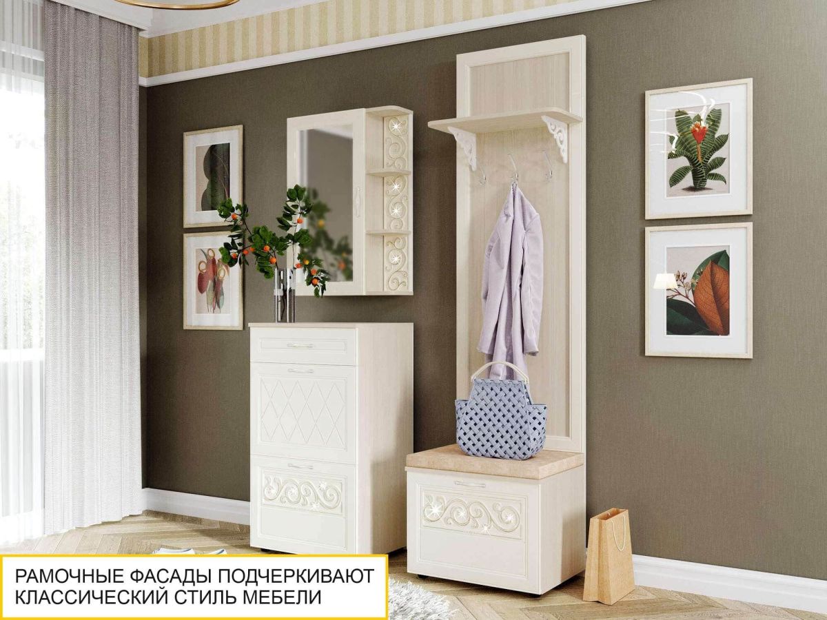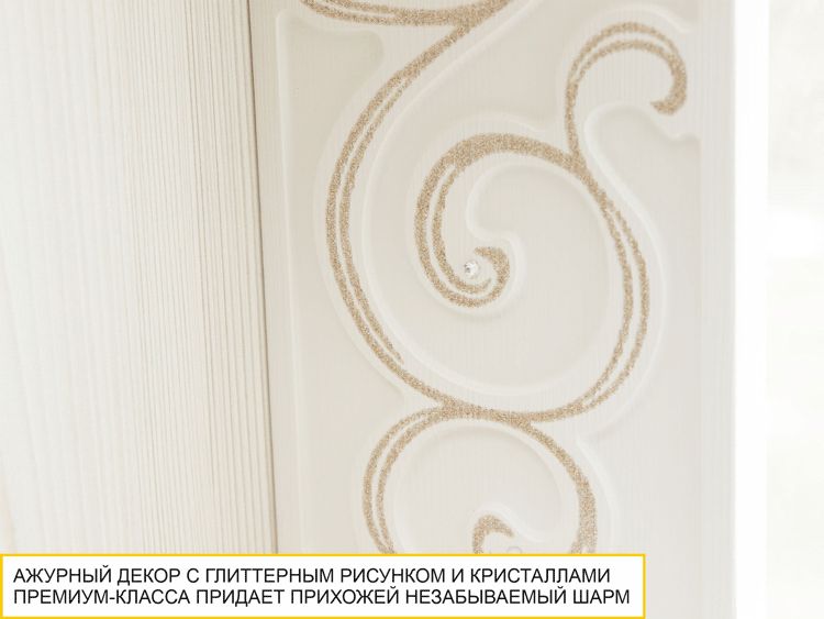 Зеркало «Тиффани 47.17» является частью модульной программы «Тиффани». Прихожая «Тиффани» - символ классического стиля и незабываемого шарма. Нежные светлые фасады и изысканный ажурный декор с кристаллами премиум-класса – отличительная черта коллекции.